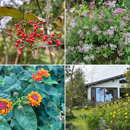 ふと、モデルハウスの秋の音連れを探していますと、秋の花!と桜の花‼が同時にお楽しみいただける庭を見ることができます。