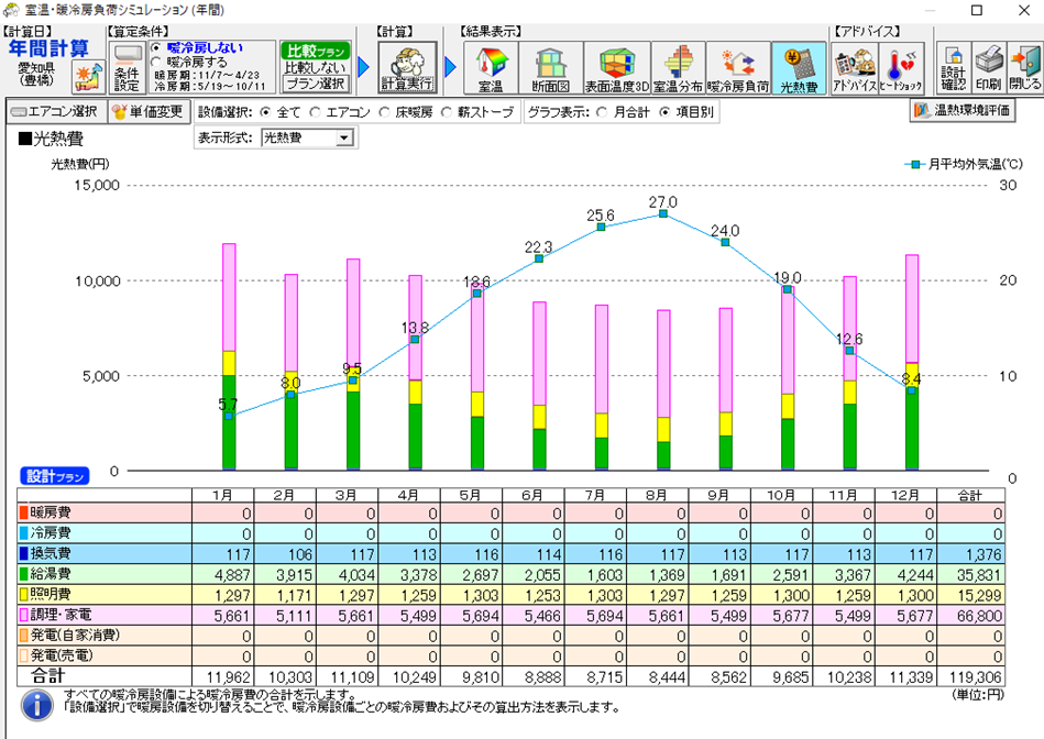 また、光熱費シミュレーションも可能ですので、建築時の費用だけでなく、長い目でみた判断をしていただくことができるのも魅力です。